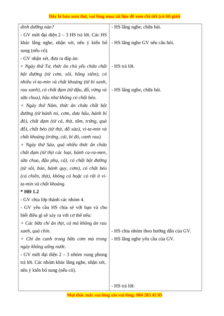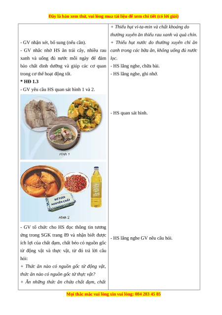 (cá chiên, thịt), không có hoặc có rất ít vi- ta-min và chất khoáng. * HĐ 1.2
