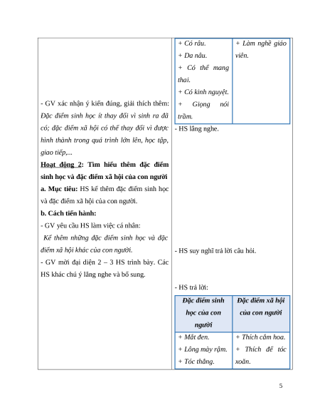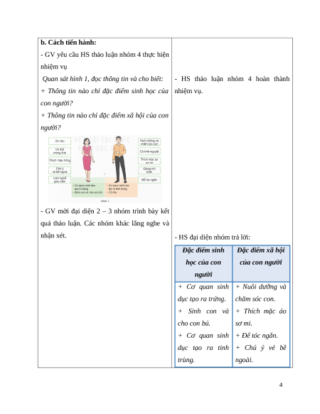 điểm sinh học và đặc điểm xã hội của con người. 3 b. Cách tiến hành: