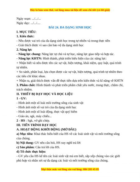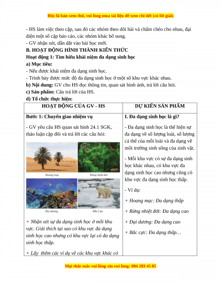 Giáo án Bài 24 KHTN 6 Cánh diều (2024): Đa dạng sinh học