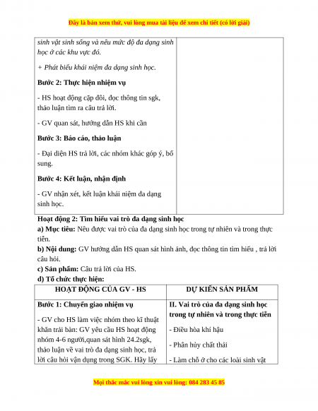 a) Mục tiêu: Nêu được vai trò của đa dạng sinh học trong tự nhiên và trong thực