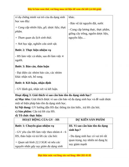 Hoạt động 3: Giải thích vì sao cần bảo tồn đa dạng sinh học?