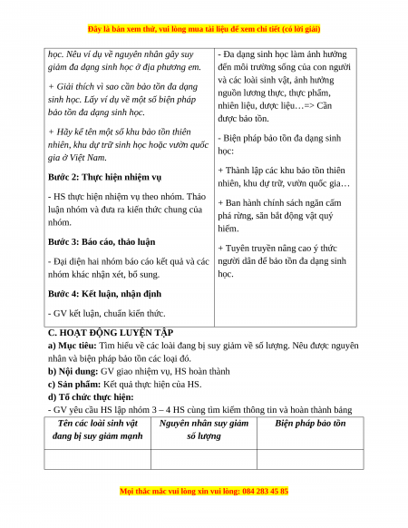 - Giải thích được vì sao cần bảo vệ đa dạng sinh học 2. Năng lực