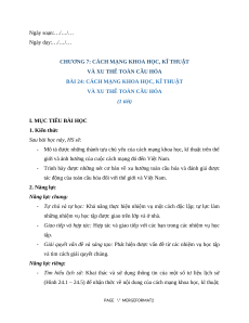 Giáo án Bài 24 Lịch sử 9 Chân trời sáng tạo: Cách mạng khoa học, kĩ thuật và xu thế toàn cầu hoá