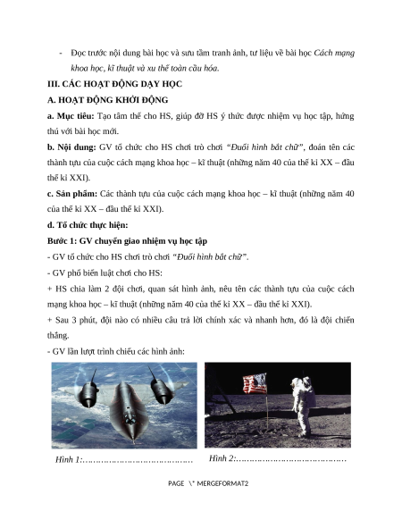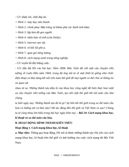 (Hình 24.1 – 24.5) để nhận thức về nội dung của cách mạng khoa học, kĩ thuật; PAGE \* MERGEFORMAT2