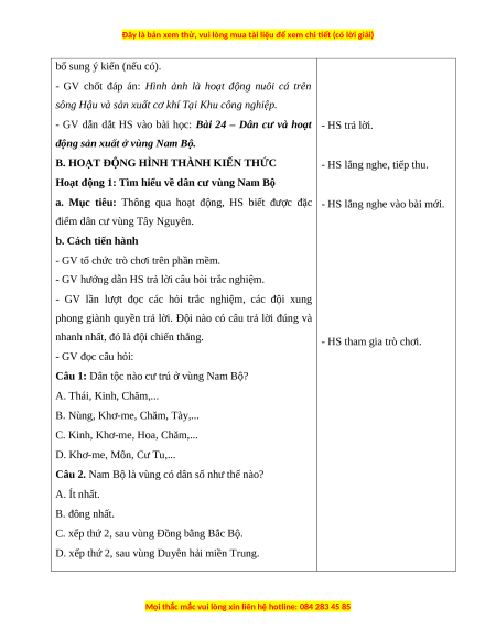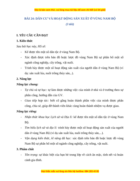 BÀI 24: DÂN CƯ VÀ HOẠT ĐỘNG SẢN XUẤT Ở VÙNG NAM BỘ (3 tiết)