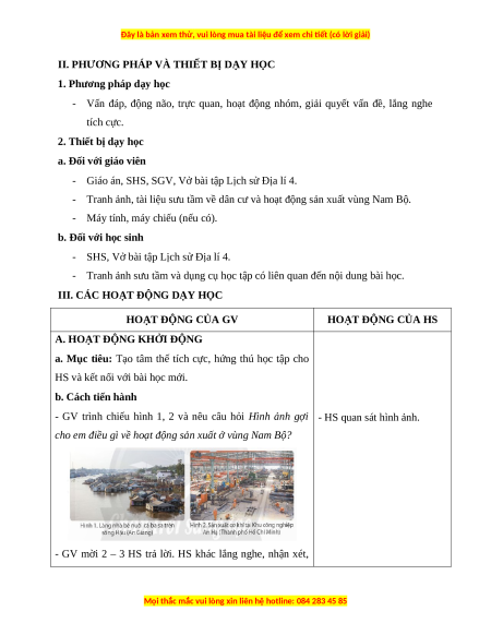 II. PHƯƠNG PHÁP VÀ THIẾT BỊ DẠY HỌC