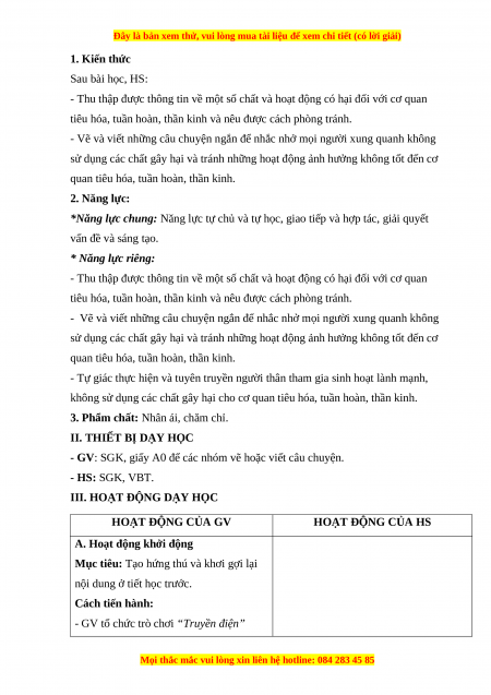 * Năng lực riêng: Thu thập được thông tin về một số chất và hoạt động có hại