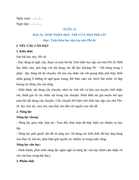 BÀI 24: TINH THẦN HỌC TẬP CỦA NHÀ PHI-LÍT