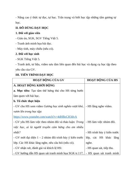 - GV cho HS xem video Gương học sinh nghèo vượt khó, - HS lắng nghe video.