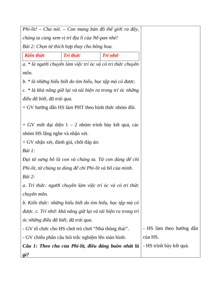 + Đoạn 2: Cha Phi-lít cho đến tìm xem Nê-pan ở đâu