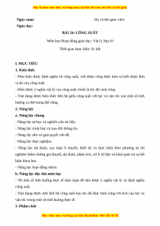 Ngày soạn: Họ và tên giáo viên: Ngày dạy: BÀI 24: CÔNG SUẤT