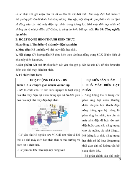 b. Nội dung: GV hướng dẫn HS thực hiện theo các hoạt động trong SGK để tìm hiểu về nhà máy điện hạt nhân.