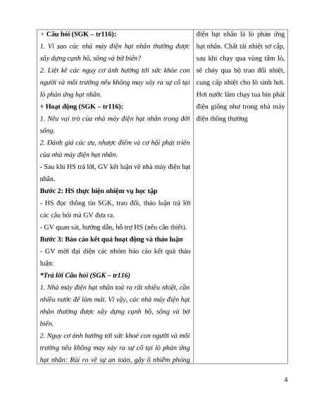 - Sau khi HS trả lời, GV kết luận về nhà máy điện hạt nhân.