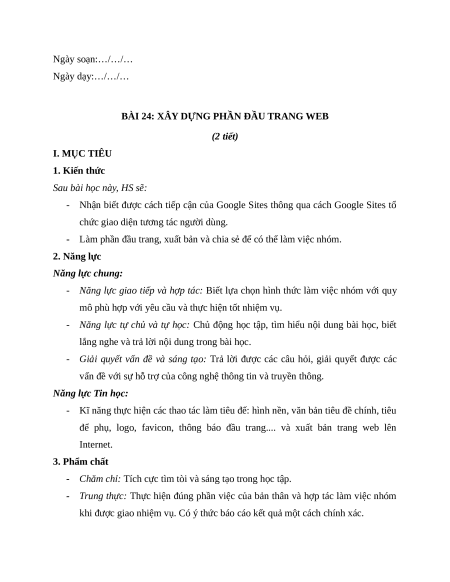BÀI 24: XÂY DỰNG PHẦN ĐẦU TRANG WEB (2 tiết) I. MỤC TIÊU 1. Kiến thức
