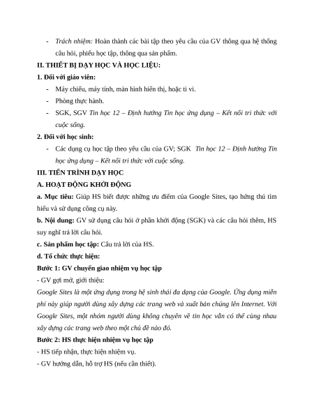 II. THIẾT BỊ DẠY HỌC VÀ HỌC LIỆU: