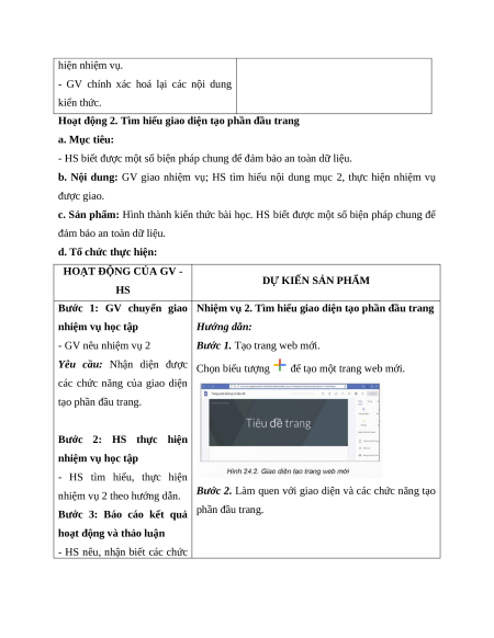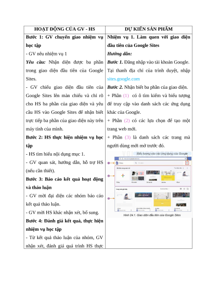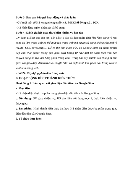Hoạt động 1. Làm quen với giao diện đầu tiên của Google Sites a. Mục tiêu: