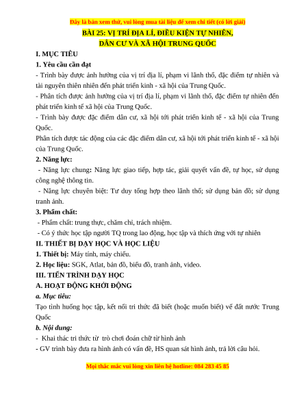 Phân tích được tác động của các đặc điểm dân cư, xã hội tới phát triển kinh tế - xã hội của Trung Quốc. 2. Năng lực: