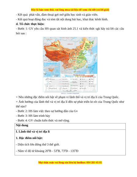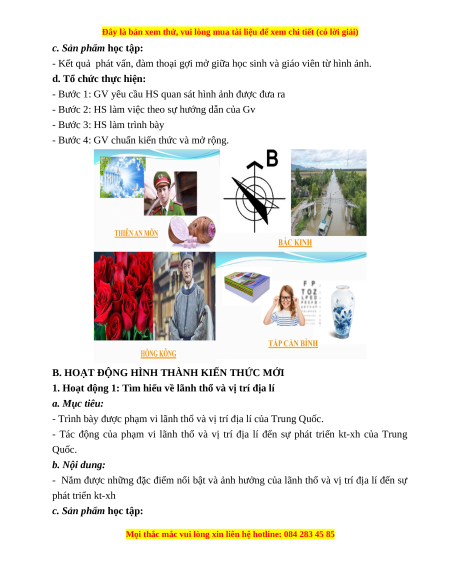 - Tác động của phạm vi lãnh thổ và vị trí địa lí đến sự phát triển kt-xh của Trung Quốc. b. Nội dung: