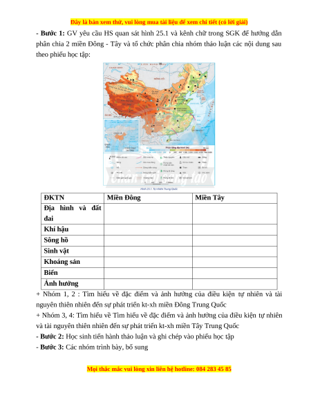 phân chia 2 miền Đông - Tây và tổ chức phân chia nhóm thảo luận các nội dung sau
