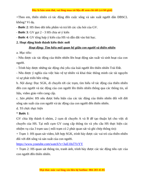 + Trạm 1: HS quan sát video, kết hợp SGK, trình bày được các vai trò của thiên nhiên