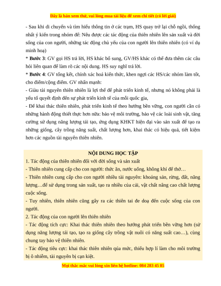 - Nêu được các tác động của thiên nhiên lên hoạt động sản xuất và sinh hoạt của con người.
