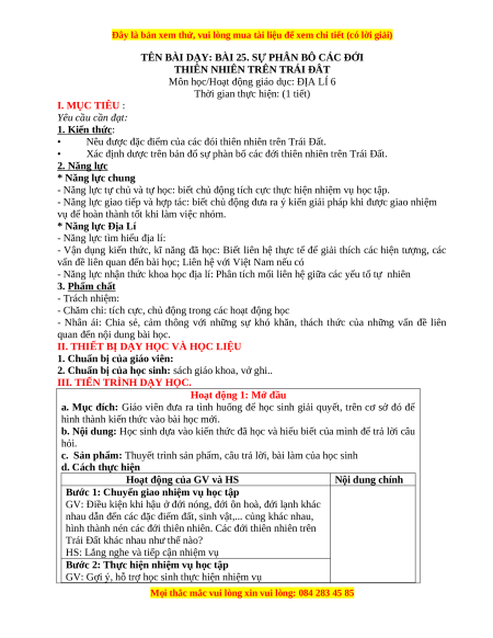 TÊN BÀI DẠY: BÀI 25. SỰ PHÂN BÔ CÁC ĐỚI