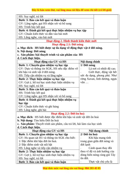a. Mục đích: HS biết được sự đa dạng về động thực vật ở đới nóng. b. Nội dung: Đới nóng