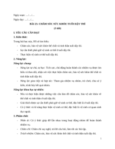 BÀI 25: CHĂM SÓC SỨC KHỎE TUỔI DẬY THÌ (3 tiết)