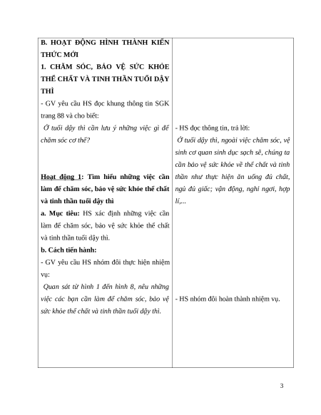 - Trách nhiệm: Chăm sóc, bảo vệ sức khỏe thể chất và tinh thần tuổi dậy thì. 1