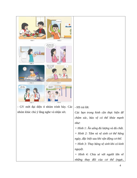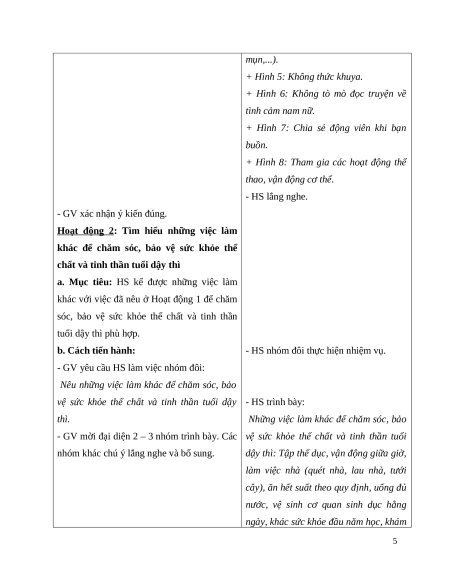 - Chăm sóc, bảo vệ sức khỏe thể chất và tinh thần tuổi dậy thì.