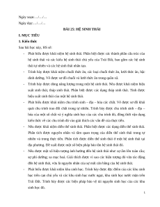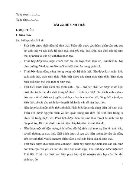 BÀI 25: HỆ SINH THÁI I. MỤC TIÊU 1. Kiến thức Sau bài học này, HS sẽ: