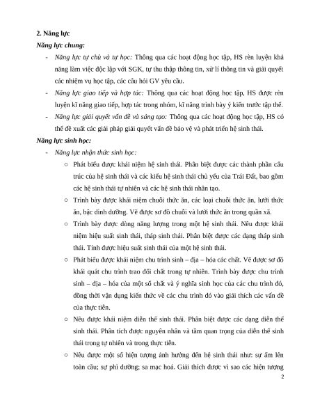 - Phát biểu được khái niệm hệ sinh thái. Phân biệt được các thành phần cấu trúc của