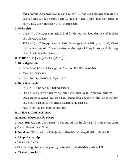 nhiên, nâng cao ý thức bảo vệ môi trường sống. 3. Phẩm chất