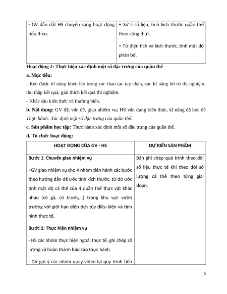 vào xác định các đặc trưng cơ bản của quần thể qua tiết học thực hành ngoài tự