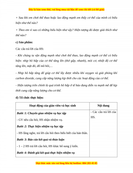 hiện: nhịp hô hấp của cơ thể tăng lên (thở gấp, nhanh), mỏi cơ, nhiệt độ cơ thể