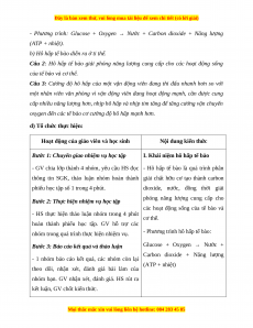 + Viết được phương trình hô hấp dạng chữ. b) Nội dung: