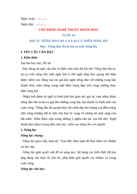 BÀI 25: TIẾNG ĐÀN BA-LA-LAI-CA TRÊN SÔNG ĐÀ