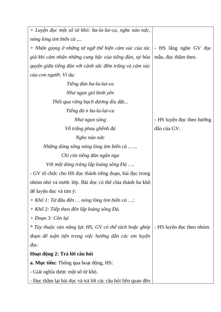 - Đọc đúng từ ngữ, câu thơ và diễn cảm toàn bộ bài thơ Tiếng đàn Ba-la-