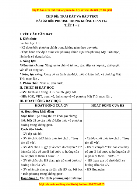 BÀI 26: BỐN PHƯƠNG TRONG KHÔNG GIAN T1,2 TIẾT 1 + 2 I. YÊU CẦU CẦN ĐẠT 1. Kiến thức Sau bài học, HS: