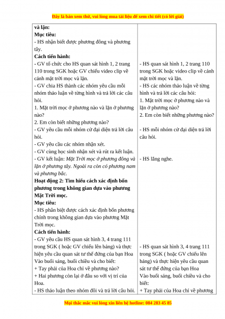 - HS nhận biết được phương đông và phương tây. Cách tiến hành: