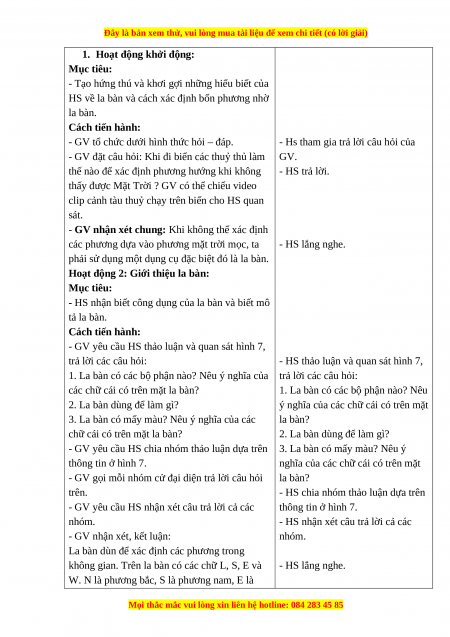 HS về la bàn và cách xác định bốn phương nhờ la bàn. Cách tiến hành: