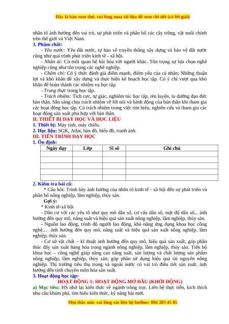 nông nghiệp, lâm nghiệp, thủy sản. 2. Năng lực: * Năng lực chung:
