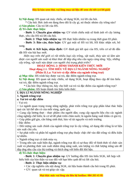 (Phần II.1.a: Vai trò và đặc điểm của ngành trồng trọt)