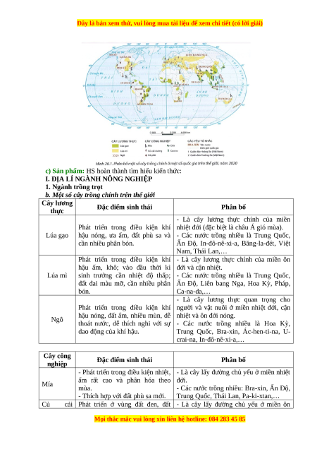 I. ĐỊA LÍ NGÀNH NÔNG NGHIỆP 1. Ngành trồng trọt