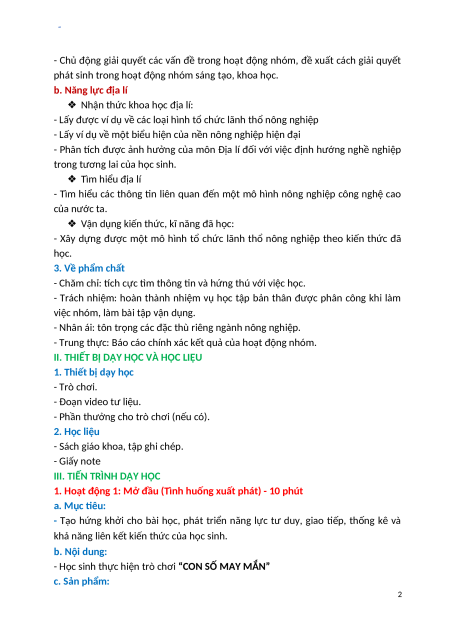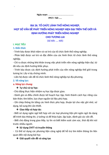 - Liên hệ được vấn đề tổ chức lãnh thổ nông nghiệp tại địa phương. 2. Về năng lực: a. Năng lực chung: