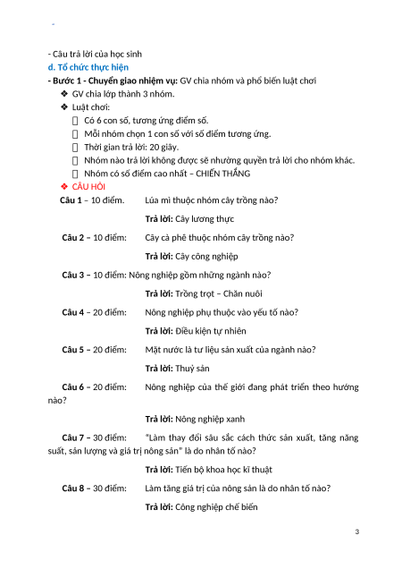 Trả lời: Nông nghiệp xanh Câu 7 – 30 điểm: