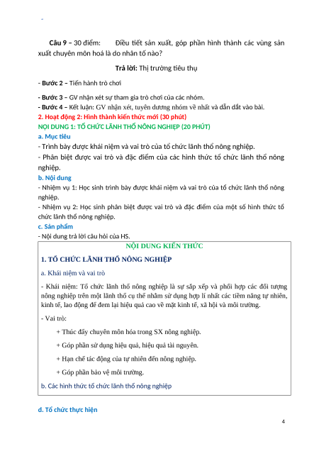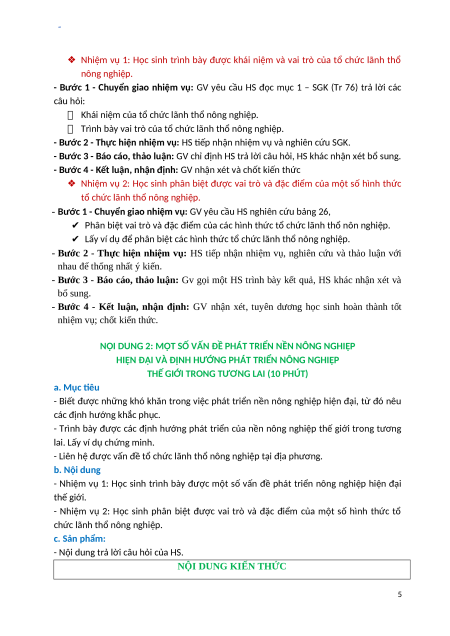 - Phân biệt được vai trò và đặc điểm của các hình thức tổ chức lãnh thổ nông nghiệp. b. Nội dung