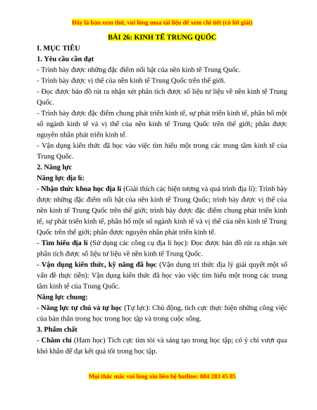 BÀI 26: KINH TẾ TRUNG QUỐC I. MỤC TIÊU 1. Yêu cầu cần đạt