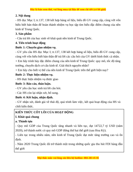 Hoạt động 2.1: Tìm hiểu đặc điểm chung của nền kinh tế Trung Quốc 1. Mục tiêu