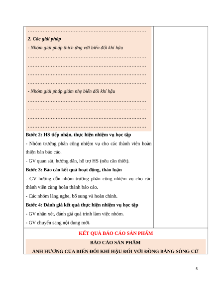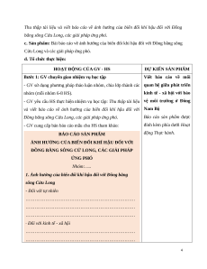 c. Sản phẩm: Bài báo cáo về ảnh hưởng của biến đổi khí hậu đối với Đồng bằng sông